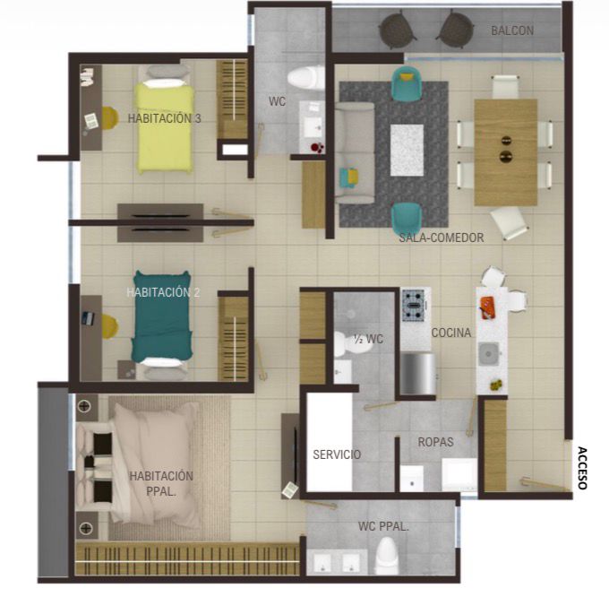 – Salón multiusos y área de estudios en cada torre