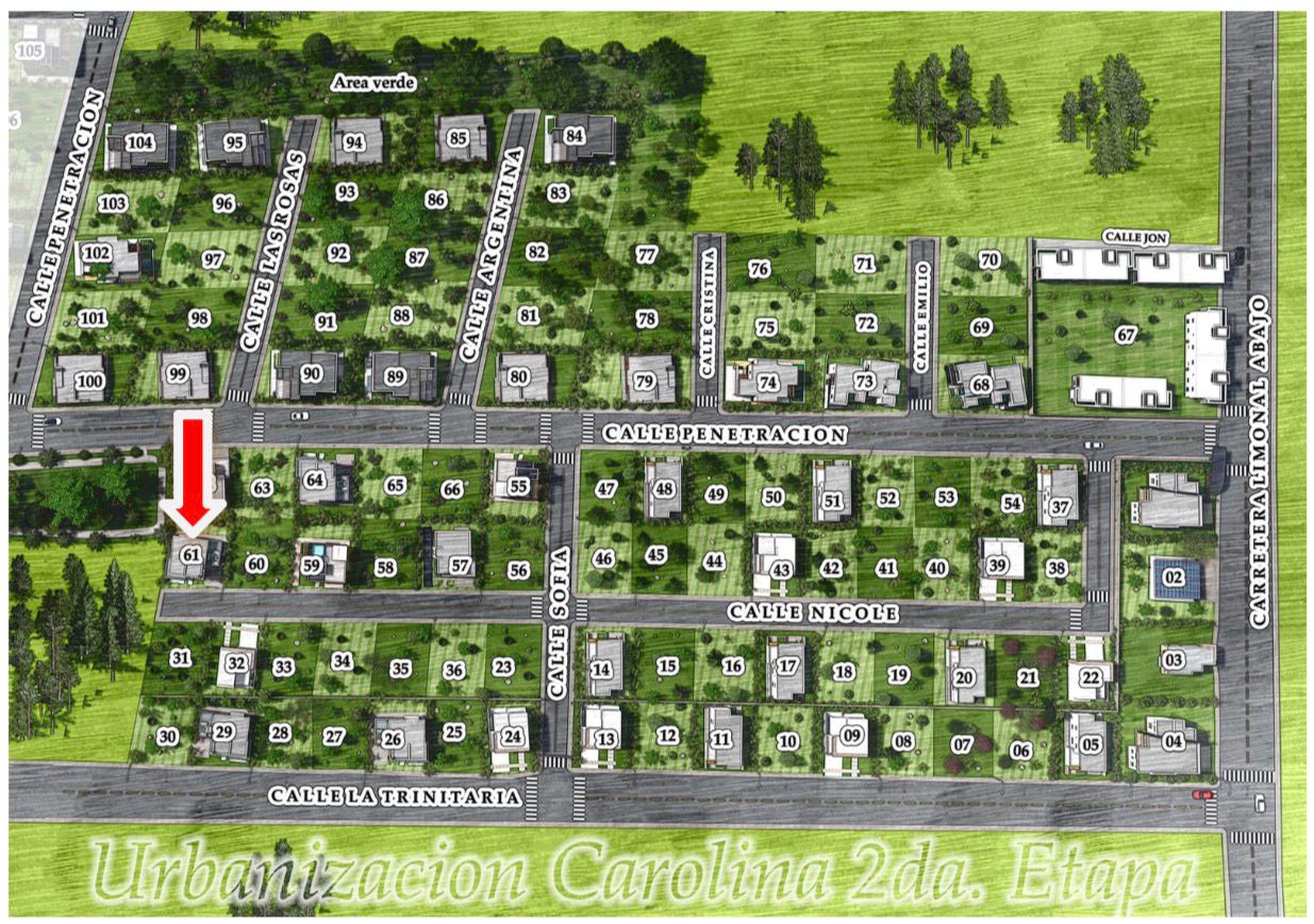 La Urbanización Carolina es un residencial de casas privado ubicado en el sector de Licey al Medio en donde puedes tener acceso tanto por la carretera Duarte como tambien por Limonal arriba.